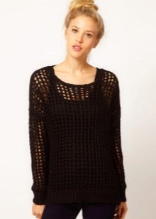 An outfit with a sweater-mesh looks impressive, regardless of the color range, so we will not give strict recommendations on the choice of colors. However, there are certain colors that look spectacular. First of all, it is black and white. It would seem that there are two opposites, but they have similar characteristics: they are well combined with clothes of any color and never go out of fashion. These options can be called universal.