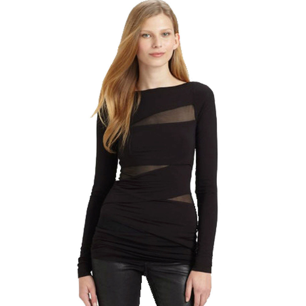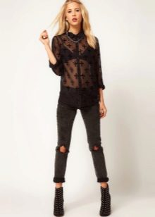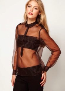 Transparent blouse-mesh is made of synthetic material, usually polyester. Polyester models at one time were a popular type of sportswear, but the fashion for them quickly subsided, because, despite all the glamor of such sweaters, they turned out to be very impractical.