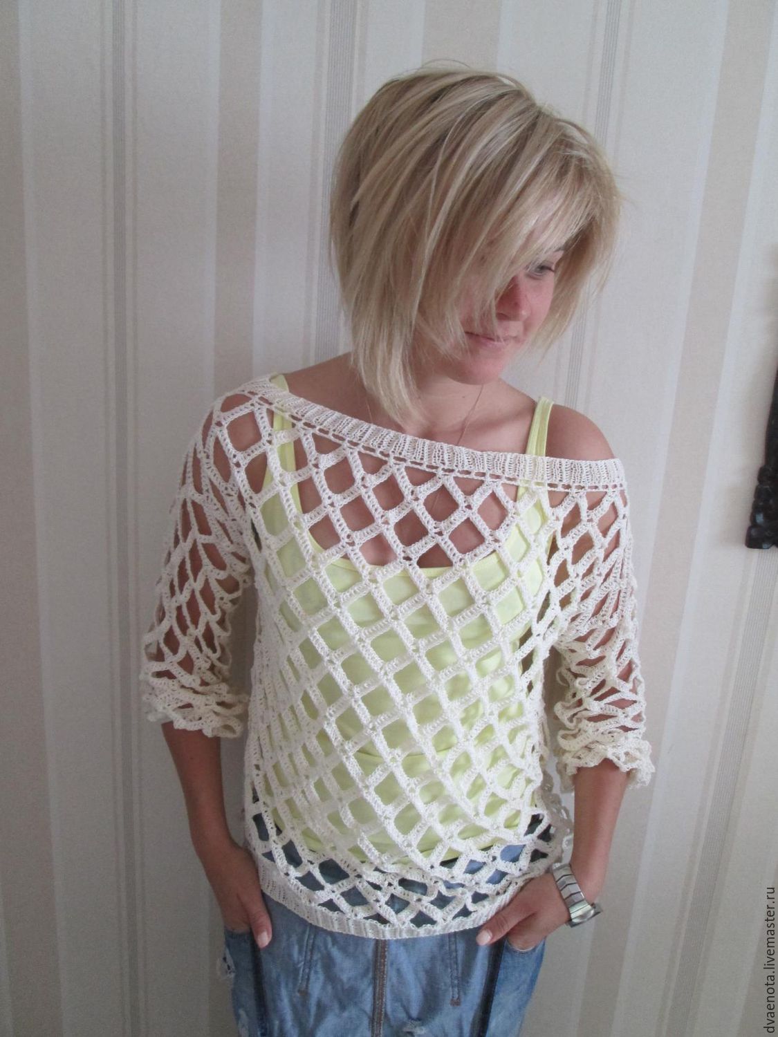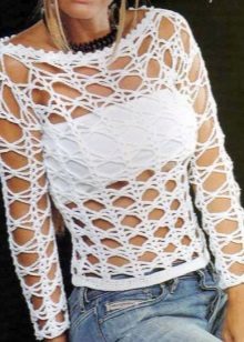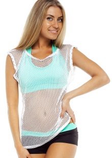 We would advise our readers not to get involved in the demonstration of underwear to others. However, if you really want to boast a taut figure, a net sweater can be worn over a short sports top or a bikini swimsuit.