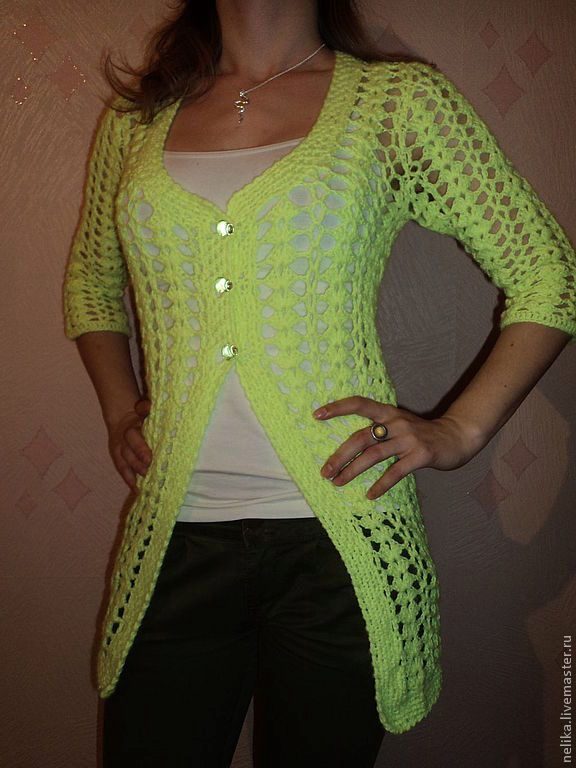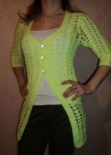 The jacket in a large mesh is by far one of the most relevant options. We advise to pay special attention to free models with a large neckline in front or behind. This jacket can be worn on a fitting dress or swimsuit.