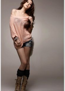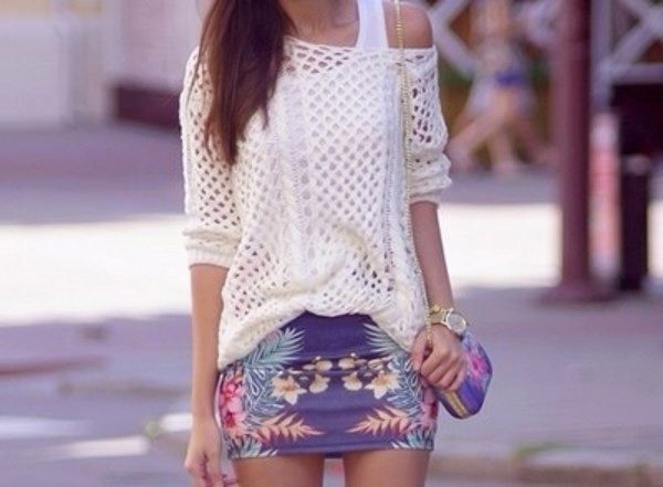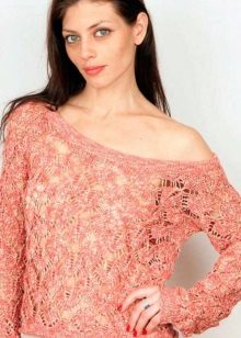An off-shoulder mesh sweater looks incredibly attractive, especially when it emphasizes skin tint. Dark-skinned girls should look at white models (as well as blouses of light and luminous tones), and we advise white ladies to give preference to dark-colored sweaters and shades.