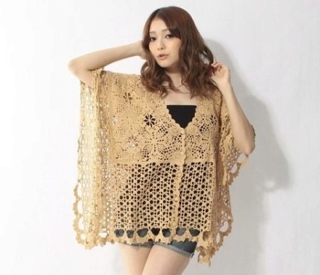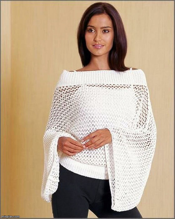 As a lightweight cape, which is worn not on a naked body, but on top of a thin knitwear, the sweater-net is suitable for everyone without exception: both thin and puffy girls, and very young ladies, and older women.