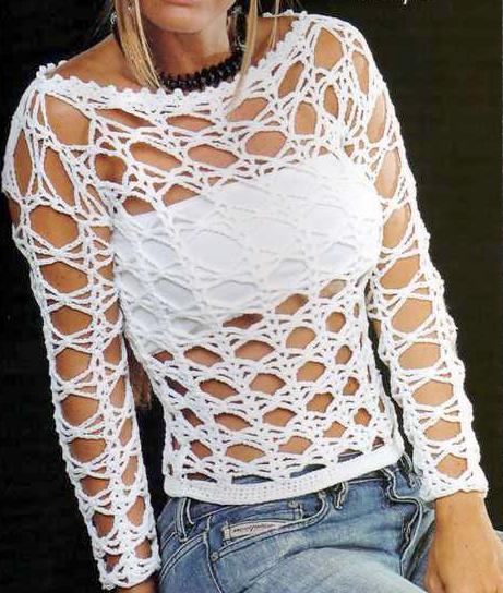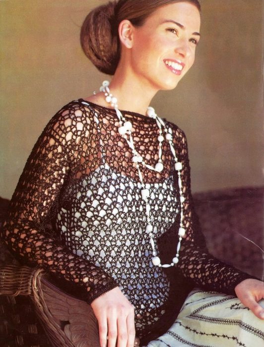 A sweater mesh crocheted - a great solution for those who know at least the basics of needlework. To knit the simplest sweater-mesh, it is enough to learn how to read knitting patterns and learn basic crochet techniques. Even a novice needlewoman to create such a sweater will take no more than a few days.