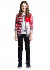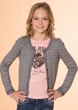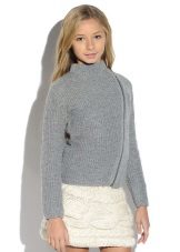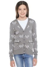 They differ in the density of the material, and shades, and the neck, and the length of the sleeves, and fasteners. Most often, teens are interested in models of sweaters, which are different from others in some unusual details, for example, a special viscous, interesting decor or neck cut. In the design of jackets for teenage school girls they use prints, embroidery, bows, ruffles and interesting buttons.