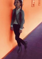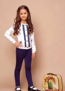 Most often, a school blouse is combined with dark trousers and a light (often white) satin blouse or cotton shirt. Also, the jacket is worn with a skirt and a blouse, and in a cool time with a jacket you can complement the outfit of a sundress and a turtleneck.