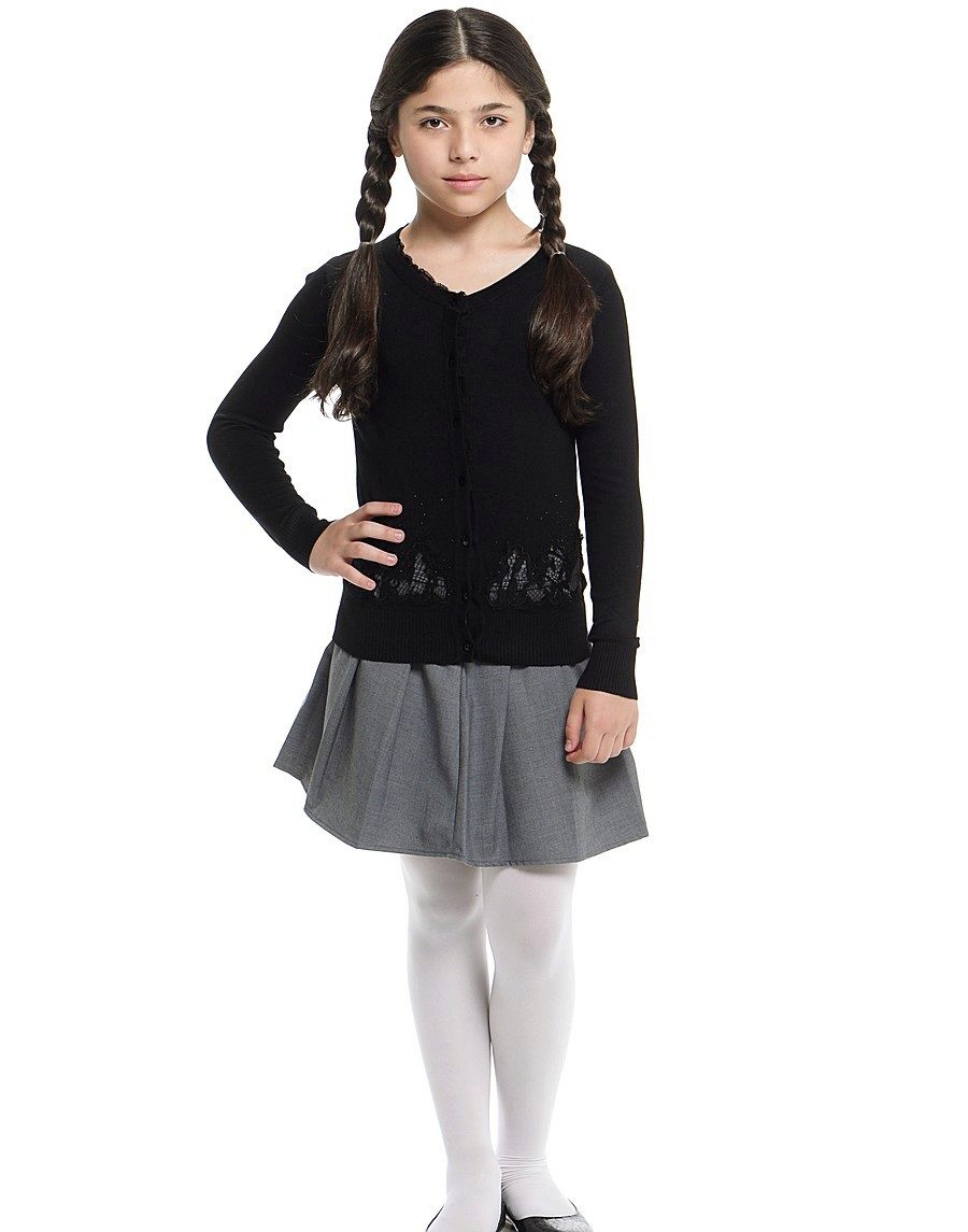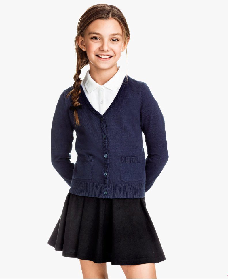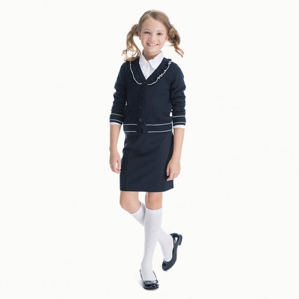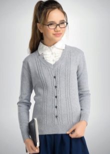 The range of school sweaters that are in demand today is represented by products from cotton, mixed or synthetic threads. Most often, girls buy sweaters, which have a mixed composition, as they are easier to care for.