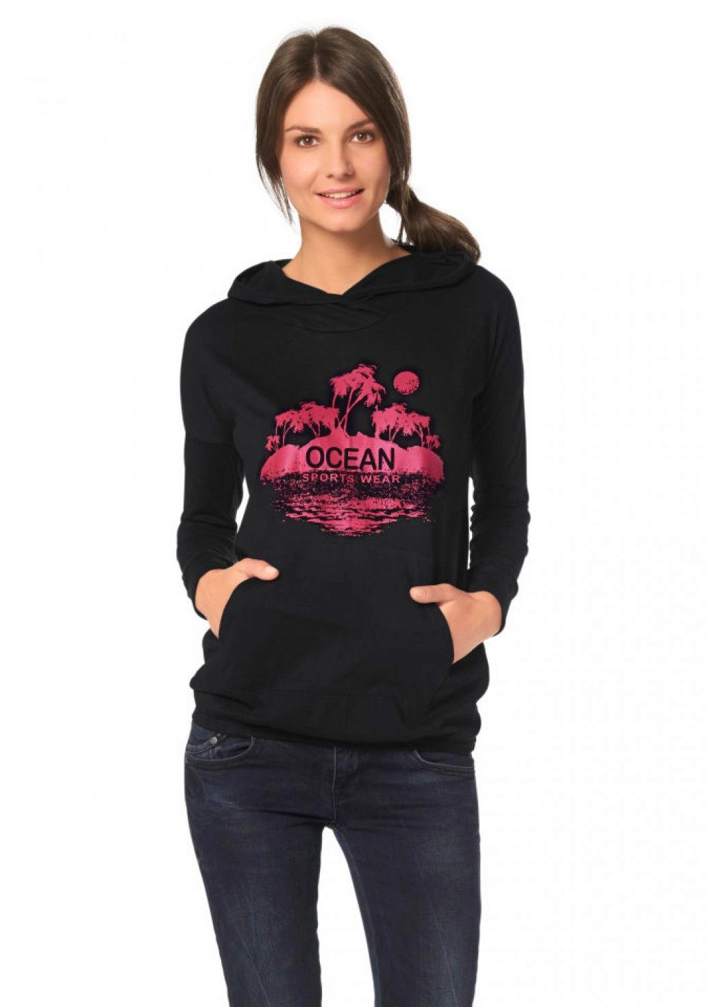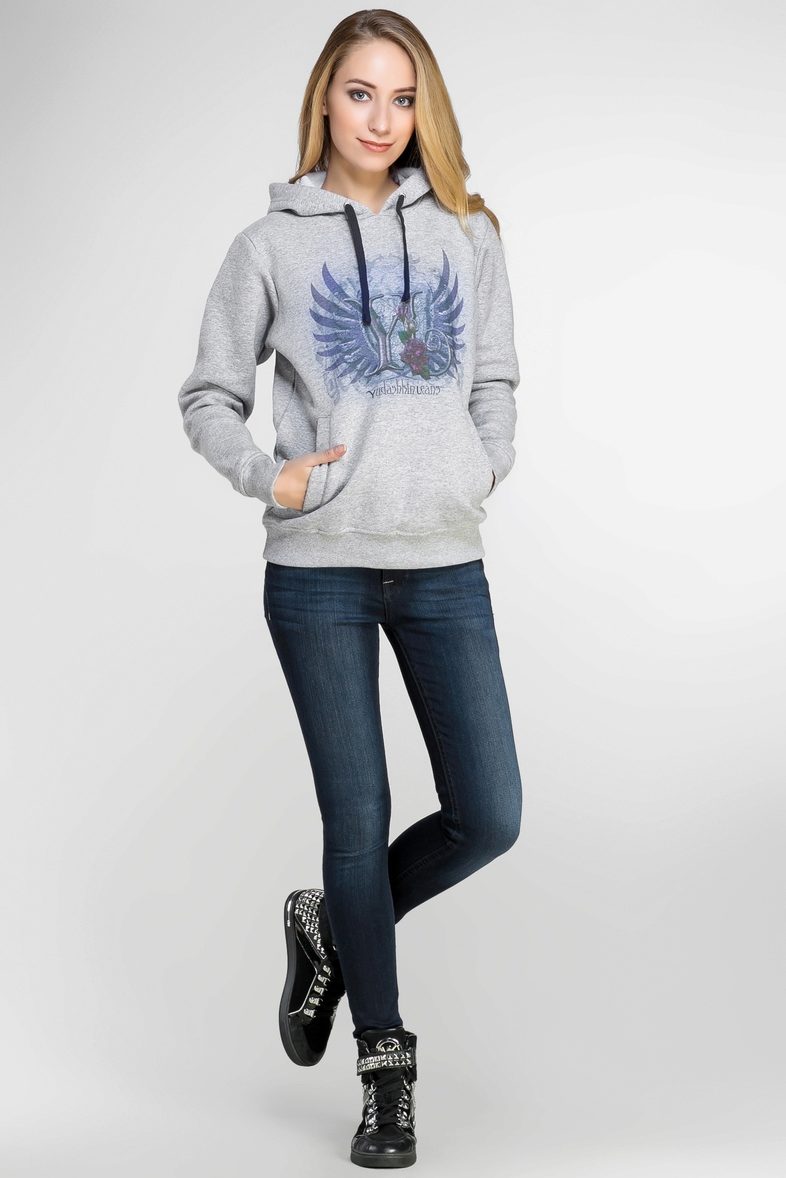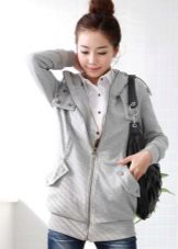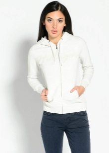 Sweatshirt with jeans or boyfriends perfectly matches the jacket with the hood. On the feet - comfortable sports shoes.