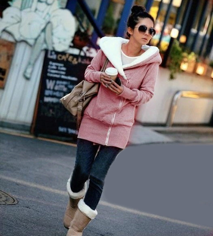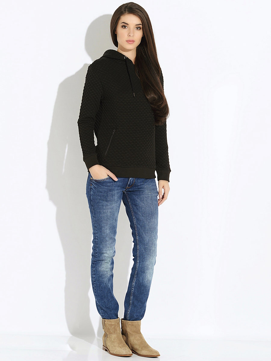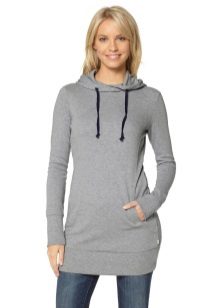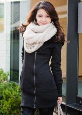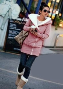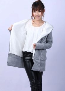 Warm sweaters: knitted or thick footer with fleece. Knitted models can perform two functions. The first is to be independent outerwear in warm spring or early autumn. The second - instead of a sweater in the cold. Footer sweatshirts are also good at low temperatures, hoods on them are often turned back with fur, and already play the role of a jacket.