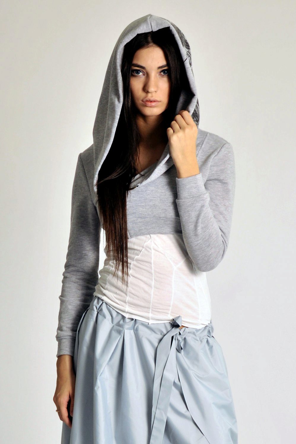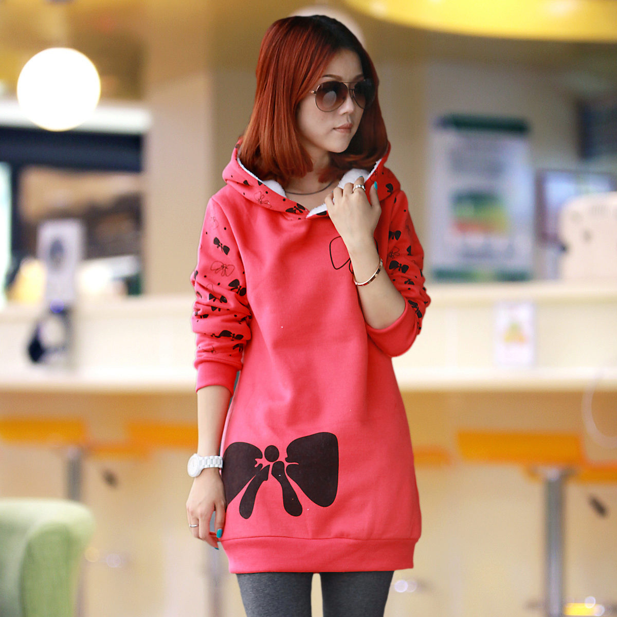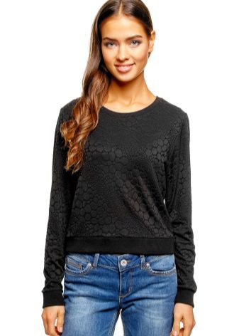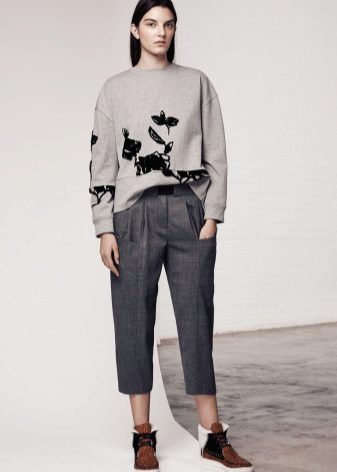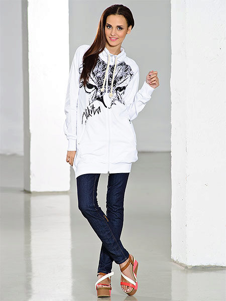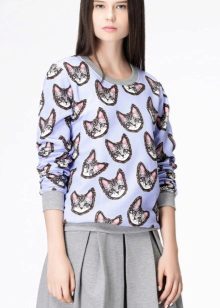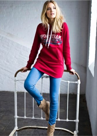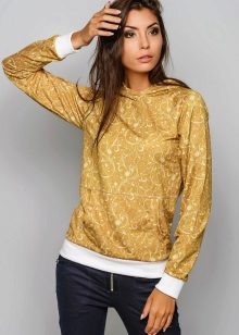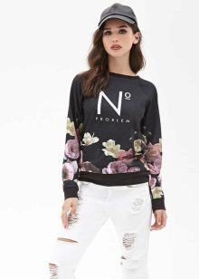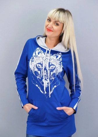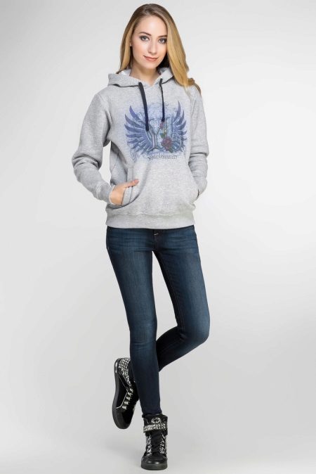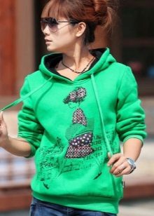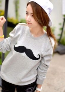 The sweatshirt looks like a sweatshirt, but has a looser cut and raglan. On some modern models there are pockets and a hood. They are sewn from knitwear, a pile is added to the warmed ones or fleece, they contain design elements in the form of graphic prints and ornaments.