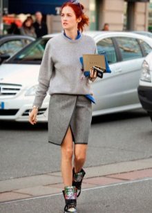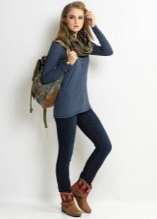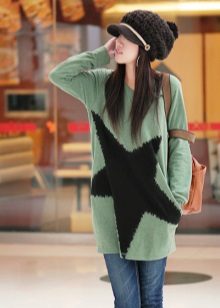 In the cold season, preference is given to cozy things, and a knit sweatshirt can be a favorite. It goes well with skinny jeans, boots or boots to create a casual outfit.