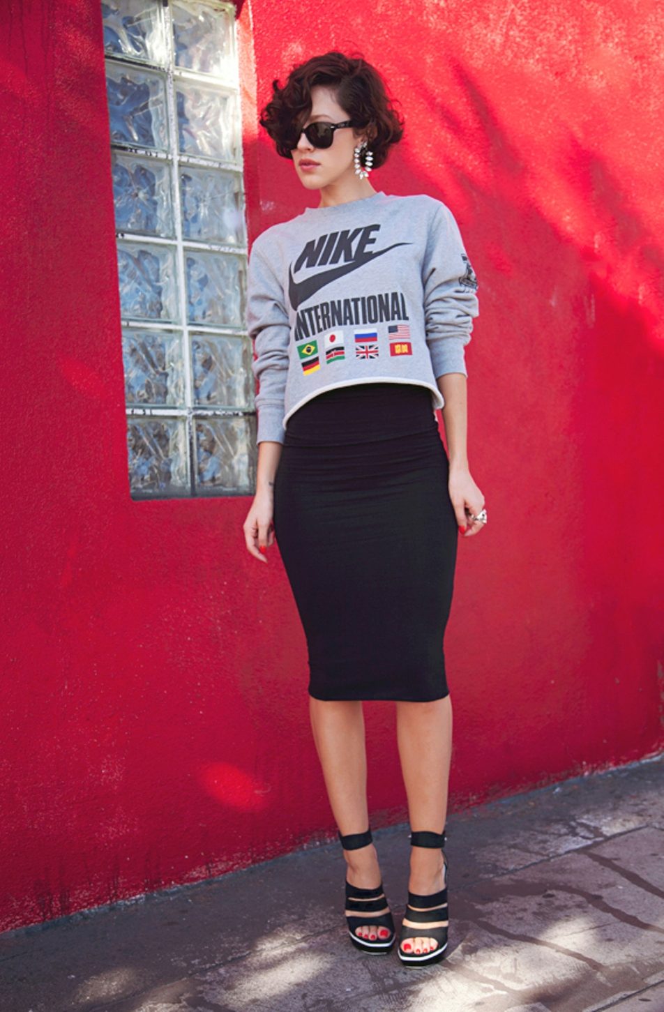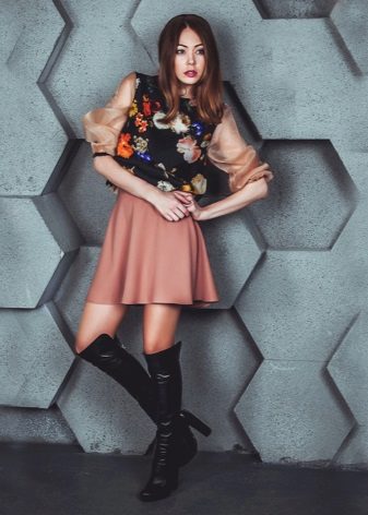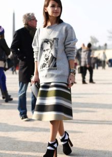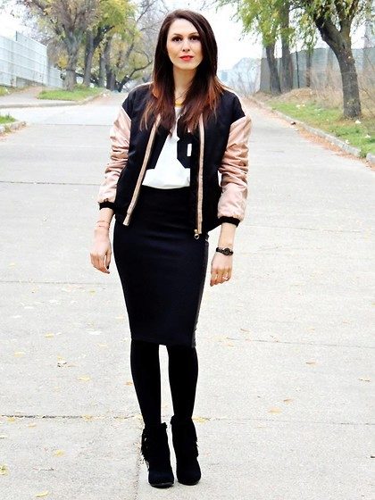 Skirt, dress and bomber, things seemed incompatible, but when they converge in one image, it turns out something trendy and relevant. Seductive look with a pencil skirt and ankle boots with heels. Looks stylish and at ease.