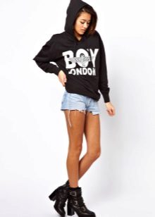 Lightweight sweatshirts create an ensemble with shorts. This outfit plus sneakers or sandals is ideal for nightly summer walks.