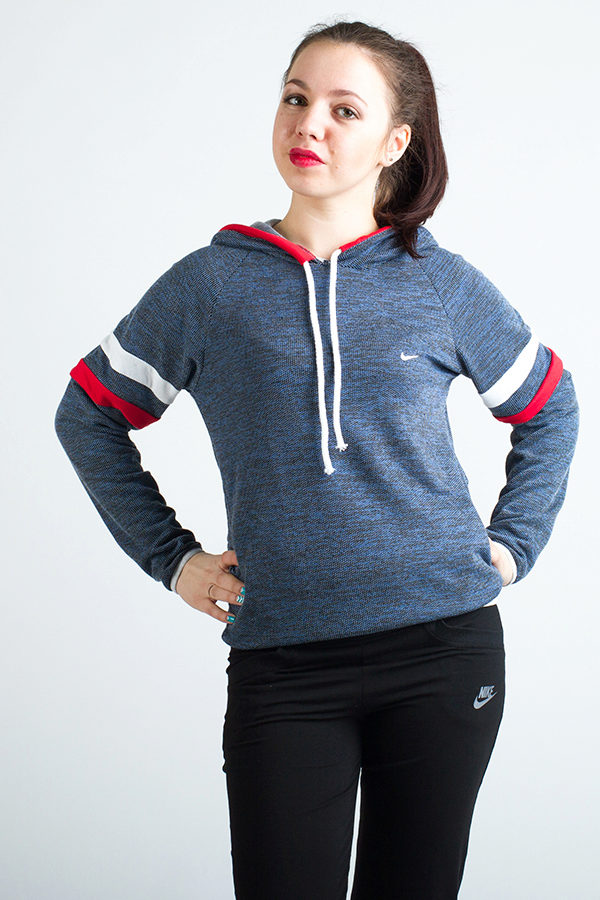 Wonderful image for sports. Such a sweatshirt does not hinder movement, it is free and comfortable. It goes well with sport shorts.
