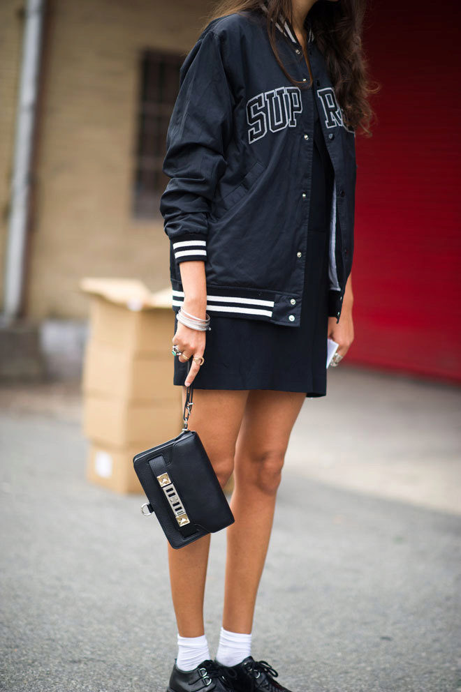 Bomber, despite its sportiness, combined with skirts, making the bow mischievous and daring.