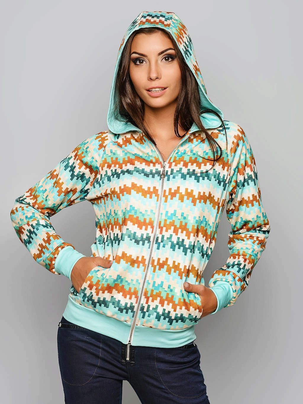 A jacket with patch pockets on the front is a handy thing with a volumetric throat and a hood. Complement a casual or sporty look.