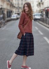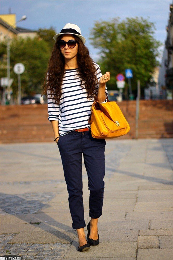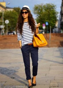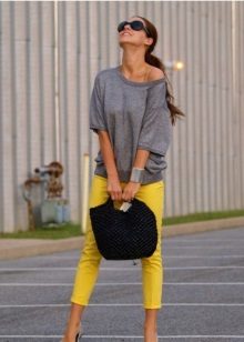 Stylish look for every day. If you also have a cropped blouse with a zipper or buttons, and you want to fit it into a casual look, put on an elongated T-shirt or T-shirt. An excellent company they will make narrowed pants, ballet shoes and a handbag on a long strap.