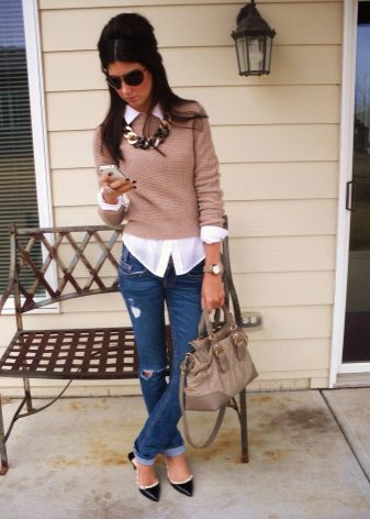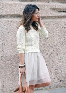 Now relevant models of acrylic and fine wool, which fit perfectly in bows in a casual style. Cashmere sweaters, due to the volume textured knit, eliminates the need to pick up jewelry, because they themselves can serve as a bright accent of the image.