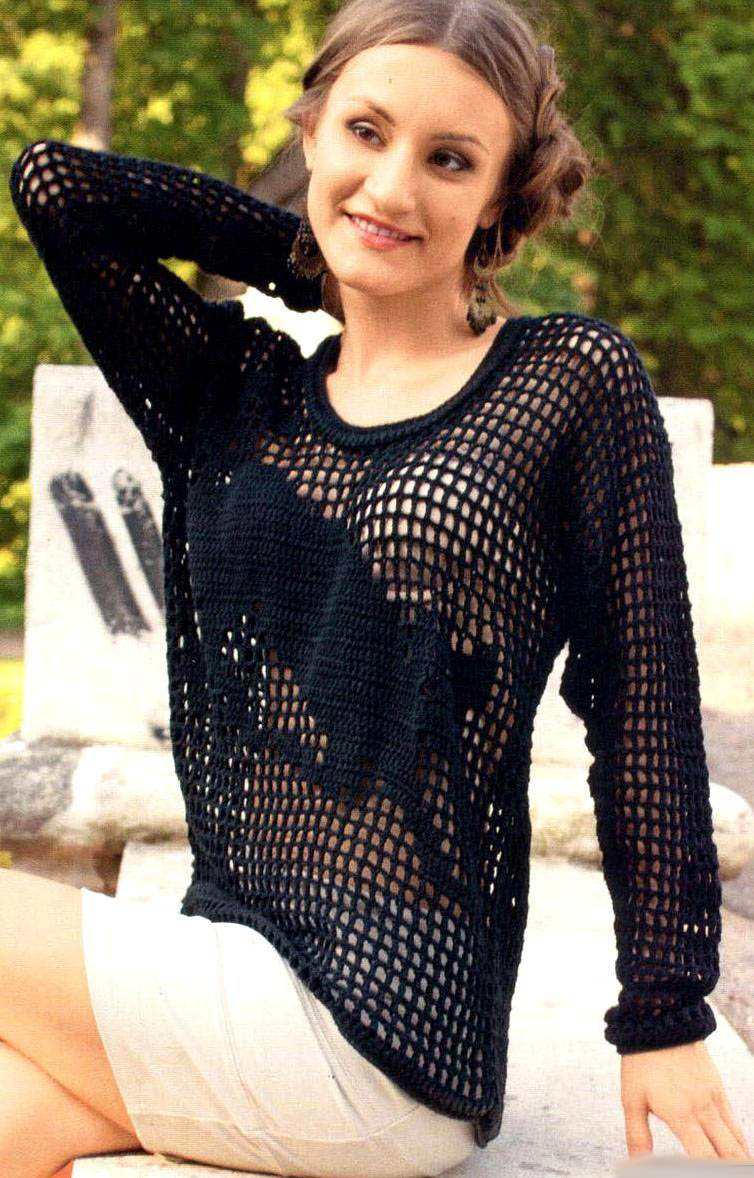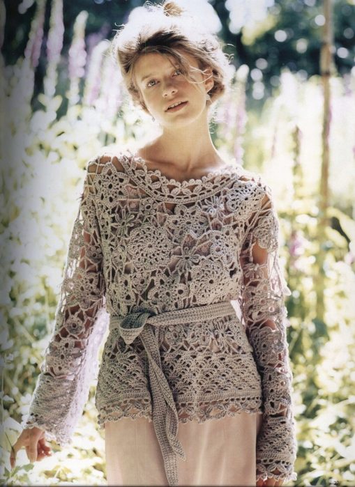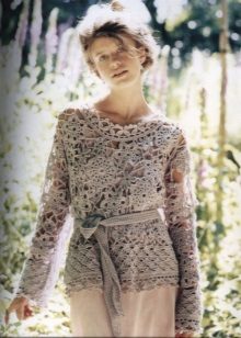 Sweatshirts made in the technique of "Irish lace" look very gentle and unusual. They have a voluminous loose texture, so they are great for wearing in the warm season.