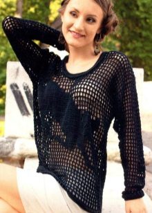 Knitted sweater in the grid is able to transform any image. A model with small cells can be worn as an independent item, and with large ones you can wear it over a T-shirt or T-shirt.