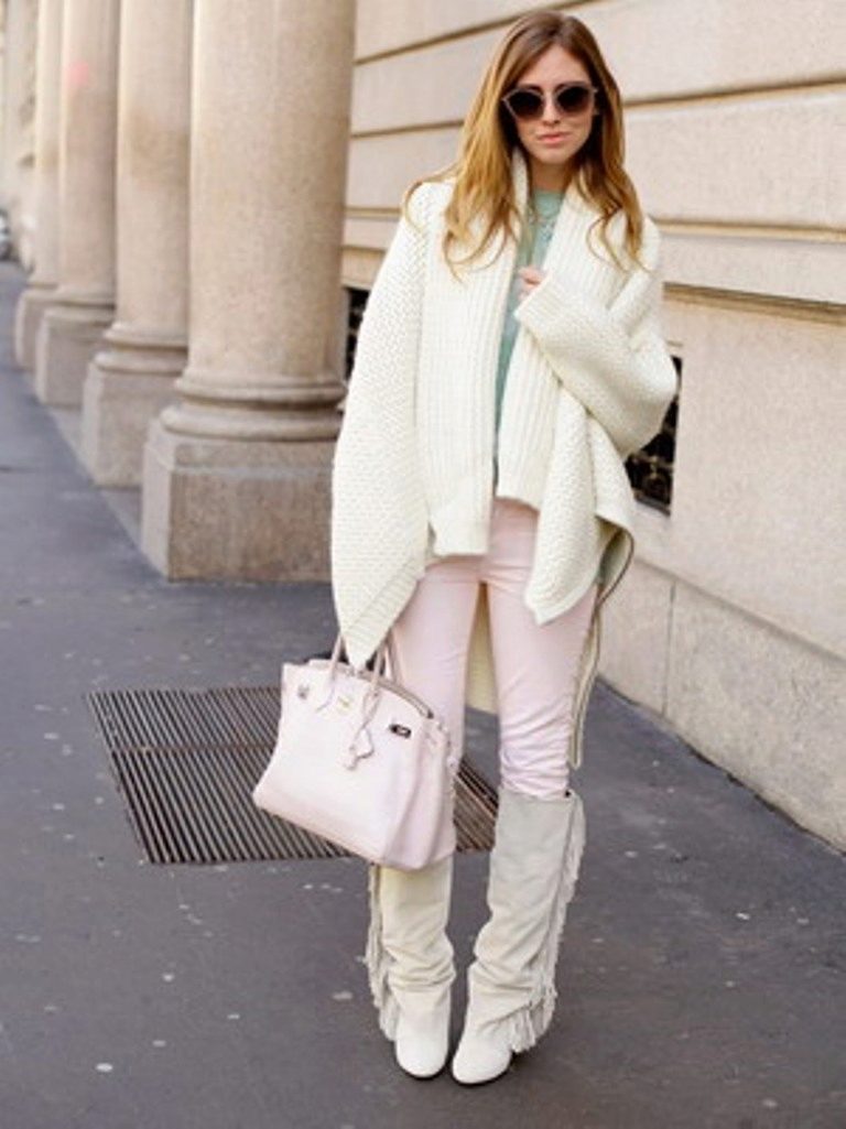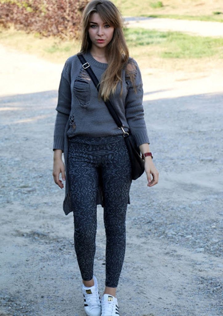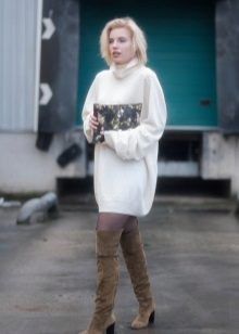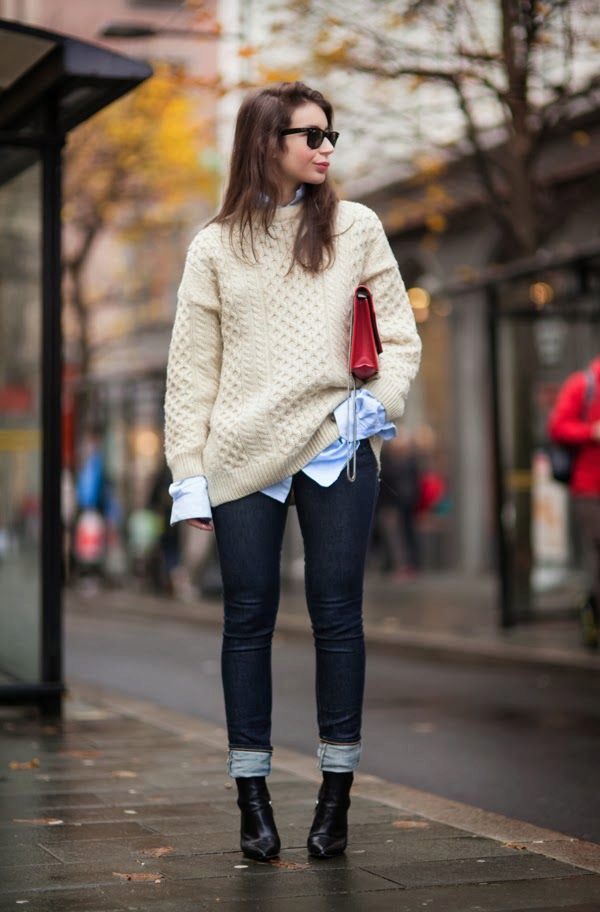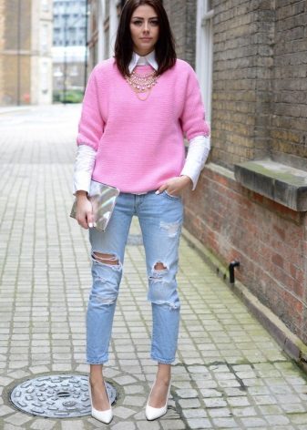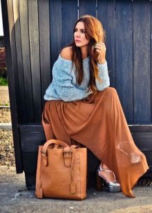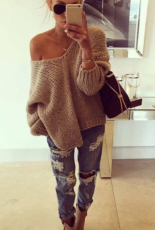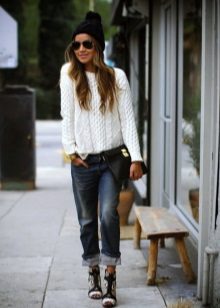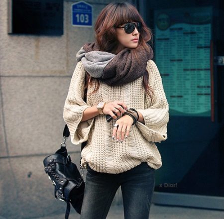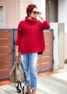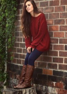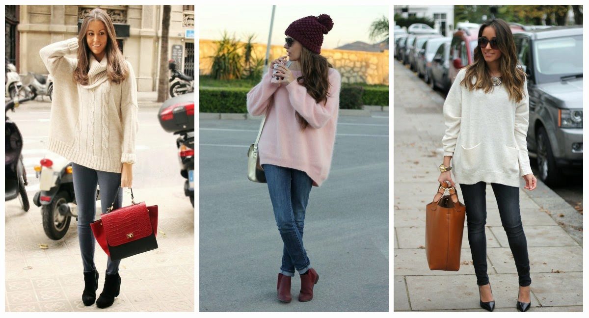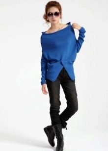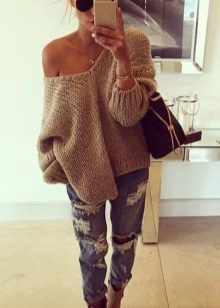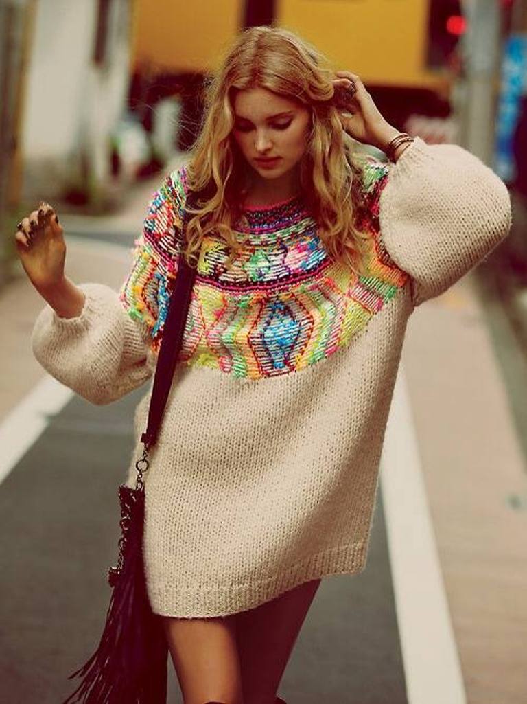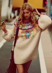 - Sweater or oversize sweater. The wider and larger the model, the more fashionable it is. Choose a sweater with a wide hem, deflated shoulders and stretched arms. Embroidery, fringe and ethnic motifs are welcome.