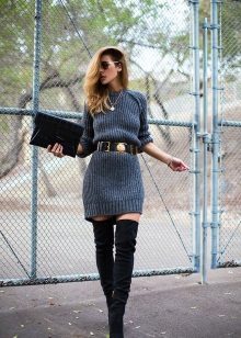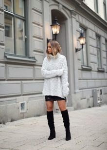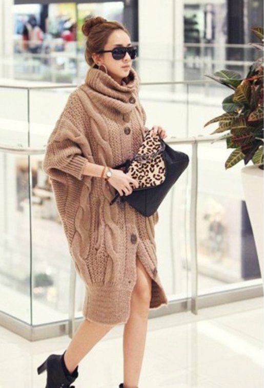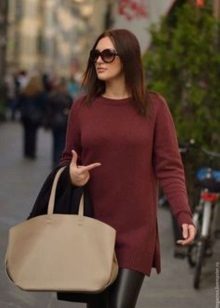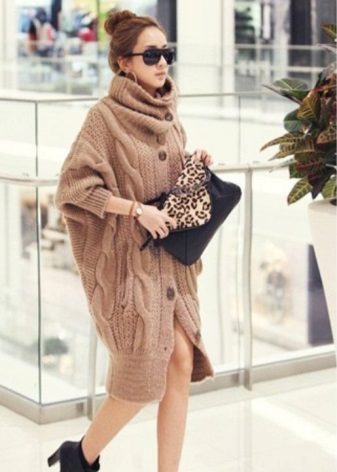 Volume sweaters are at the peak of popularity for several seasons in a row. Longer knitwear is several sizes larger. They are ideal for modeling the figure, because they perfectly hide all the flaws.