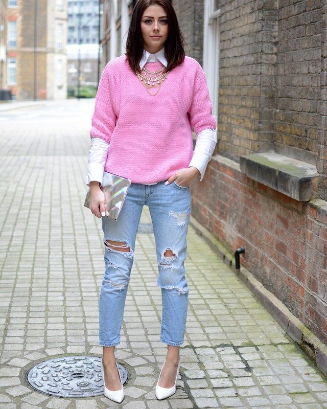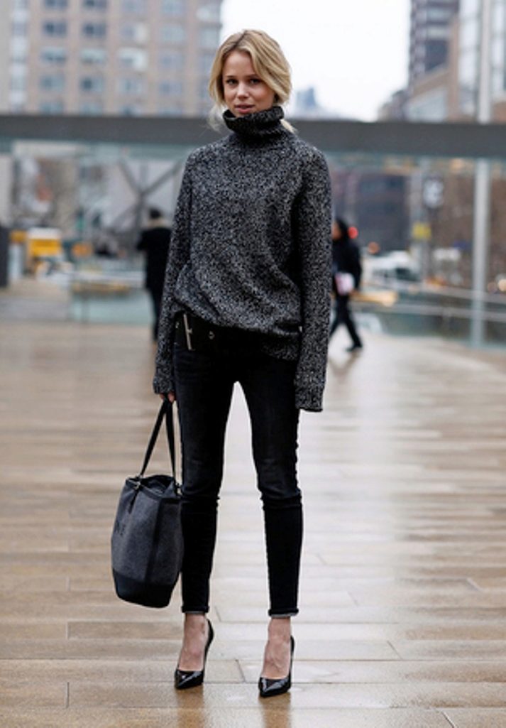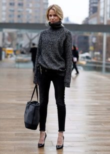 Melange sweaters were popular in the 80s, but now they are back in fashion. Prefer melange bright colors, which can be combined with simple sleek jeans or pants.