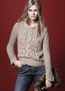 The braided sweater looks very cozy, it is associated with winter holidays, warm and comfortable. You can wear it with jeans or pants, it fits perfectly into everyday and business looks.