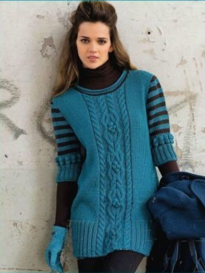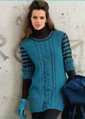 Long sweaters are at the peak of popularity.They help to form a beautiful silhouette, hide problem areas. An elongated knitted sweater, worn with trousers or jeans, will definitely not let you freeze in winter.