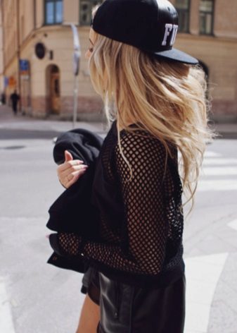 - Fishnet blouse. In the coming season, this is a basic wardrobe item that is suitable for everyday, business and evening wear. Especially original look models with applications.