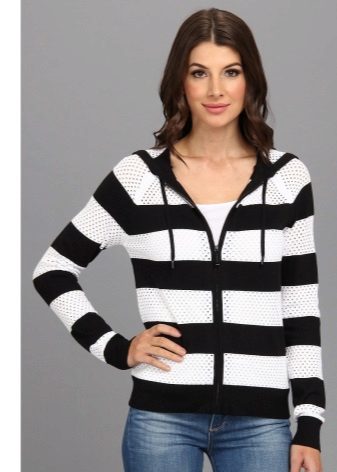 Popular monochrome black and white stripe and a combination of bright saturated colors. Such a print will add variety to your familiar look.