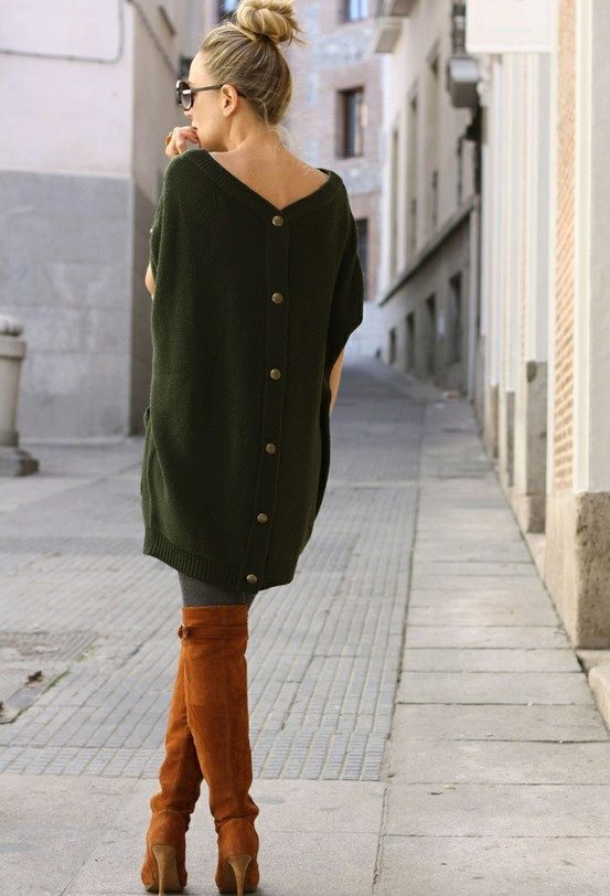 - Elongated or oversize model can be worn with tight jeans or leggings.