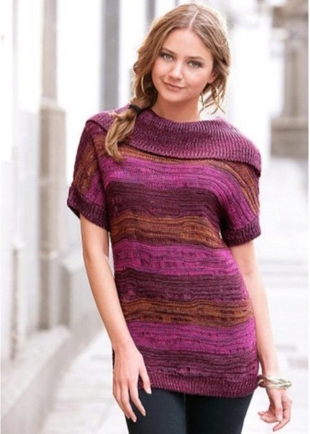 Also among the young girls are in demand sweaters and sweaters with the effect of grass. These are long-pile mohair products that are soft to the touch and attractive in appearance. They look especially good on slender girls with a good figure.