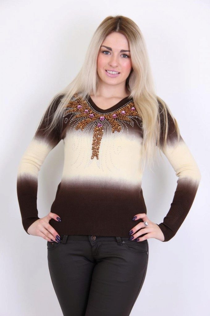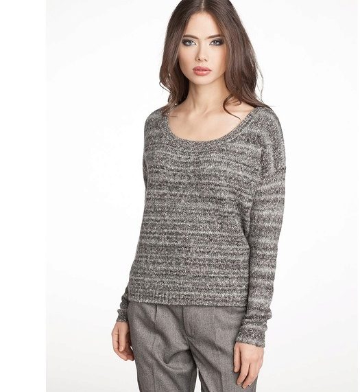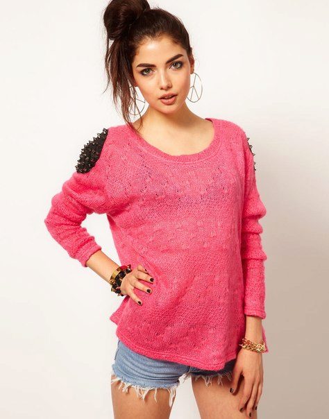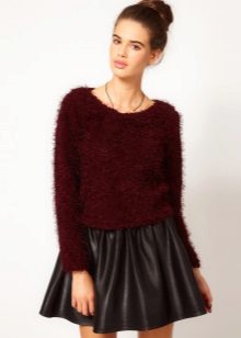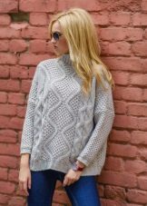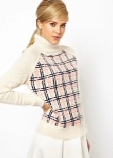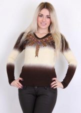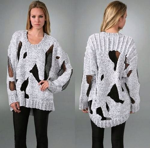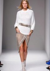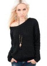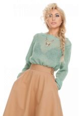Another trend of the current season is clothing overseas models. This free-style pullover with a rounded neckline and decorative inlays of transparent material is an example of topical solutions for going to a party in the cold season.