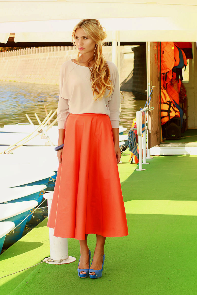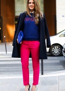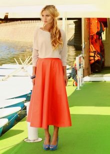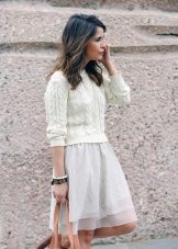 The perfect second half for any blouse will be a skirt. The main thing is a competent combination of volumes and forms. Jeans, pants and even dresses - all this will be very well in harmony with pullovers, sweatshirts, sweatshirts.