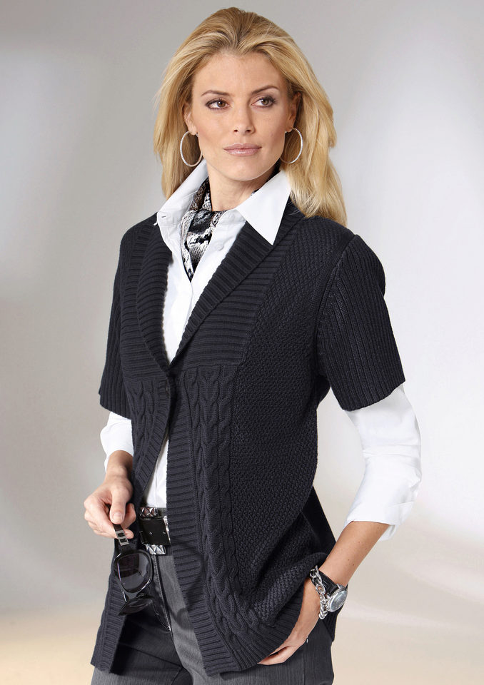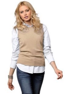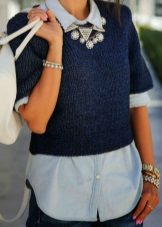 - Sweaters sweaters. Most often, this name implies a knitted sweater without a collar and any zippers or a knitted vest with a round or square neckline.