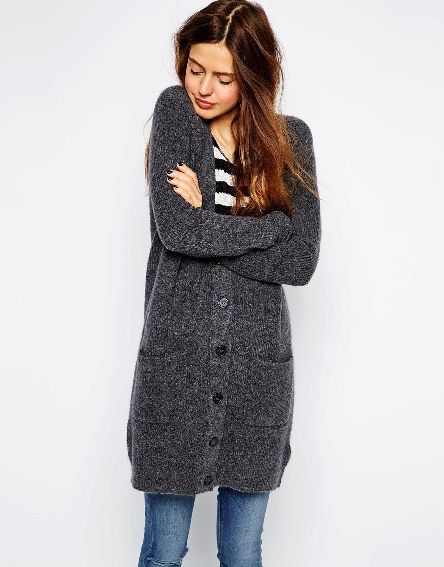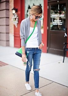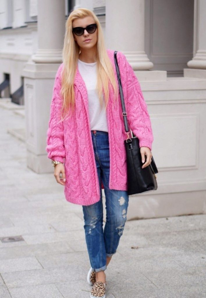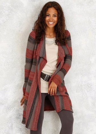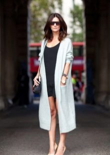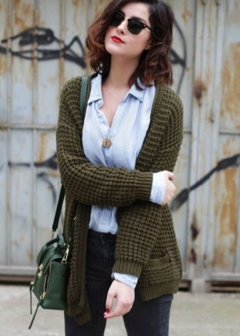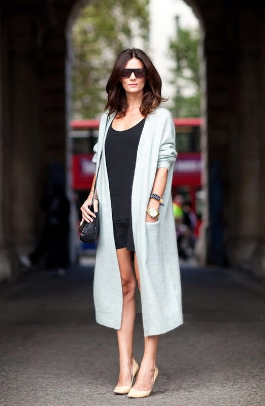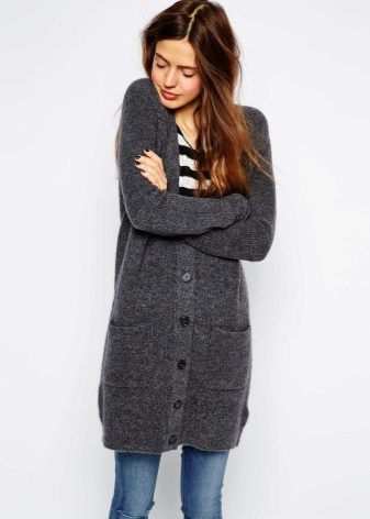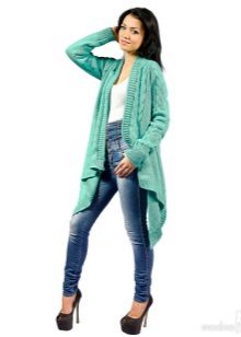 Extended models slightly cover the buttocks. Most often, the choice of such length falls on cardigans, jumpers, sweatshirts. This season, more and more fashionable images are built on the base of knee-length blouses. This is a poncho, and undershirts, and hoodie. Cardigans and sweatshirts of this length are also of interest.