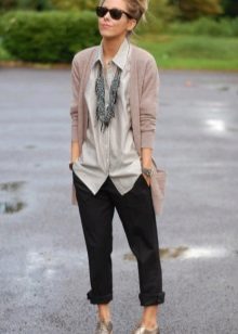 Since blouses are very different, this makes it possible to show limitless imagination in their combination with other clothes. For example, there is quite a wide scope for the notions of dresses on the basis of a jacket and other articles of clothing for the upper body. A sweater or cardigan goes well with a shirt, turtleneck, T-shirt.