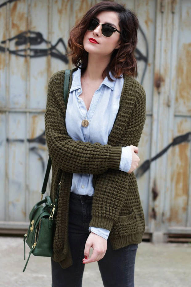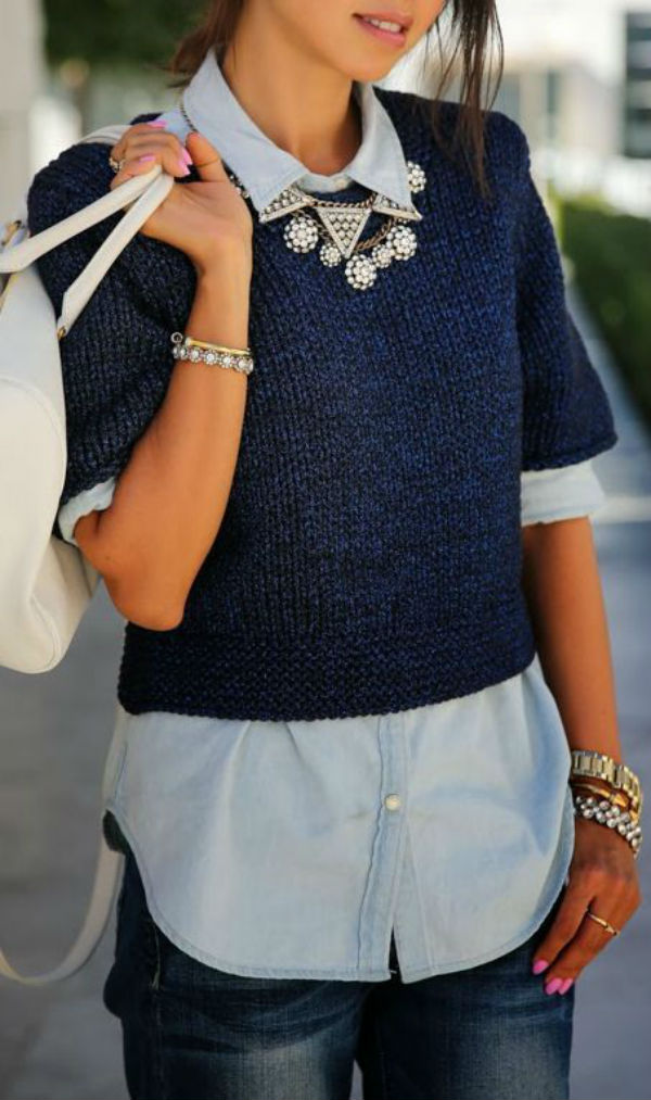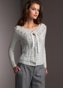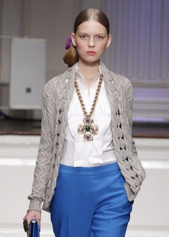 One of the most popular materials for women's blouses today is cashmere. It looks great, pleasant to the touch, has excellent heat-shielding characteristics. Today, cashmere sweaters, jackets and cardigans can be found in fashion collections of famous brands and fashion designers. A woolen or denim sweater will also look stylish and relevant.