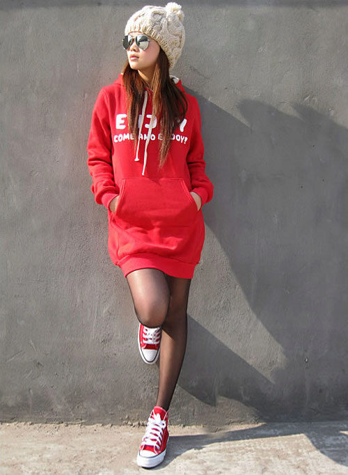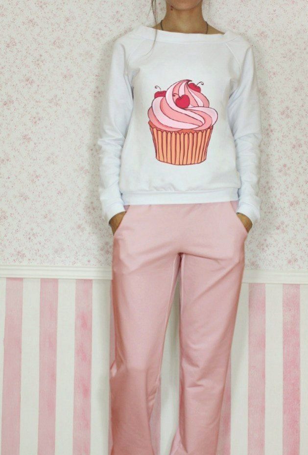 - Sweatshirt This look is a wide blouse that should be worn. The bottom has a loose fit, so it does not fit the body (there is no elastic). Also jackets considered to be a sweater with a smell or without fasteners.