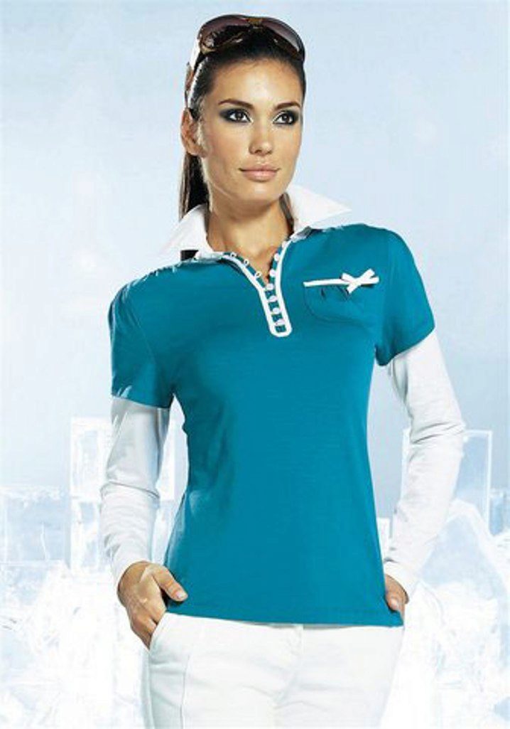 Women's polo shirts are presented in the current season in a wide range. Both models with long and with short sleeves are relevant. Blouses with a collar are generally very relevant now. This may not only be a polo, you should pay attention to a solid form-fitting option, for example, like a turtleneck.