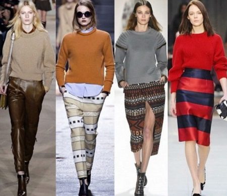 The coming winter will be very fashionable pullovers and jumpers, knitted from a special yarn. Mohair models are already beginning to gain momentum in popularity, and in the future their success with fashionistas will only grow. You should also pay attention to the blouses of the so-called weed - this is also a special type of yarn. It imitates fur, and the sweaters knitted from it look very impressive.