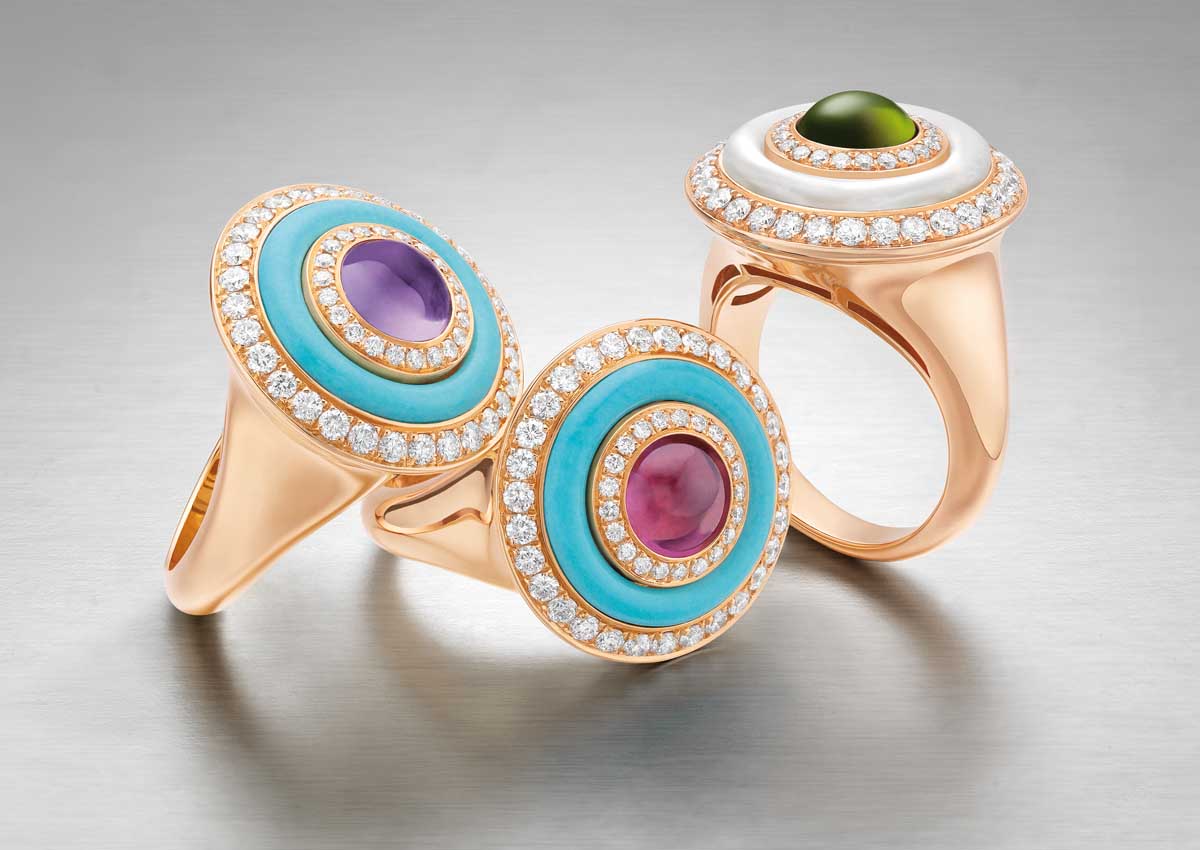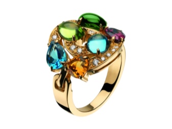 The brightest collections of the jewelry house are with colored stones that abound in laconic ring foundations. These are the most luxurious collections, for the creation of which the jewelers showed all their imagination and the wildest ideas.