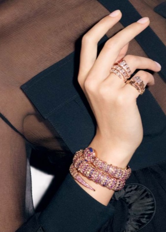 The series of rings that the house produces will be pleasant for any woman to put on not only an important event, but also to choose for everyday wear. Products are created in accordance with the general concept - in the style of Bvlgari, which is easy to learn and impossible to repeat. Each collection has a common idea, similar details, decorations are in harmony with each other, but they are all unique.