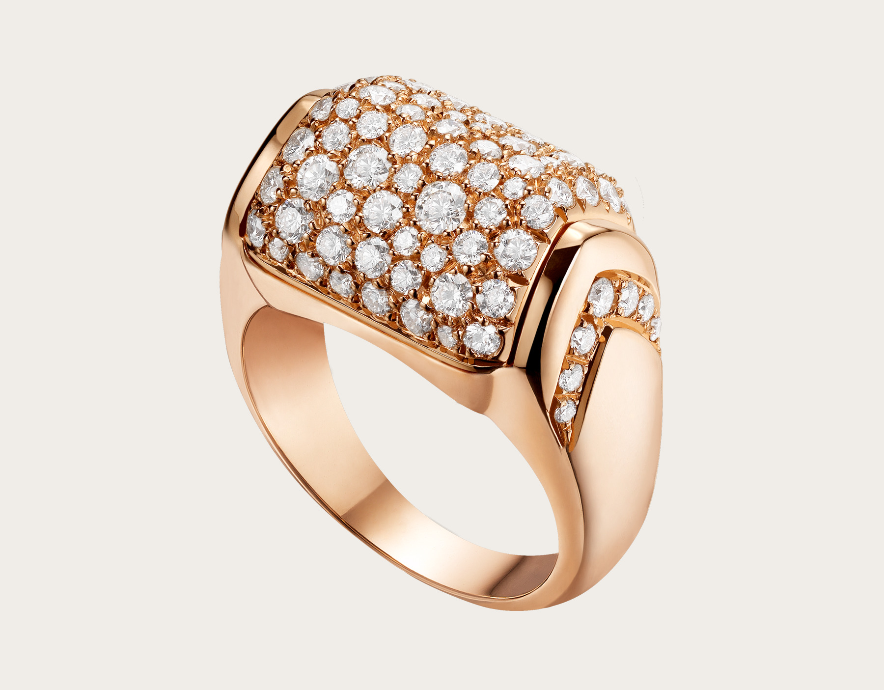 In B.Zero-1, the first transforming ring was presented, giving the opportunity to wear two jewels on one finger instead of one. Thanks to the original design, parts can be easily separated and re-fastened together. The unique lock makes a double ring a great decoration for a social event. You can also choose a model of four hoops, which can even be used as a pendant, variations of pink gold.