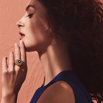 For mysterious and romantic natures, the French company produces charming jewelry from the Love collection. It is represented by flirty rings in a minimalist design, decorated with diamond placers and precious stones.