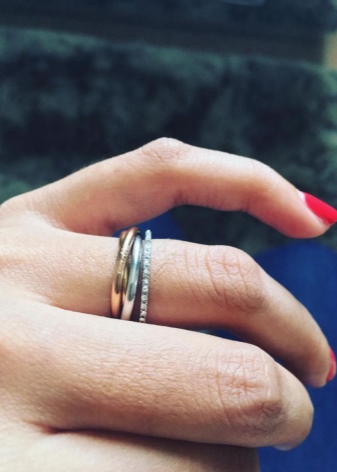 Today, three-rings are wildly popular among newlyweds. This is explained by the fact that the concept of loyalty, love and friendship is embedded in every decoration. Each value corresponds to a shade of metal: yellow, pink or white.
