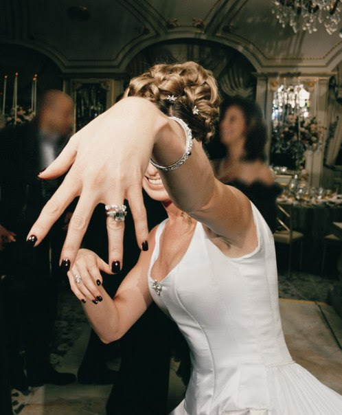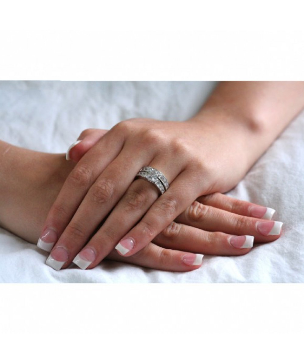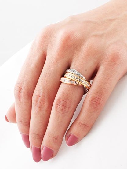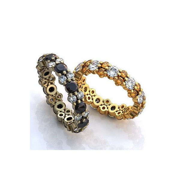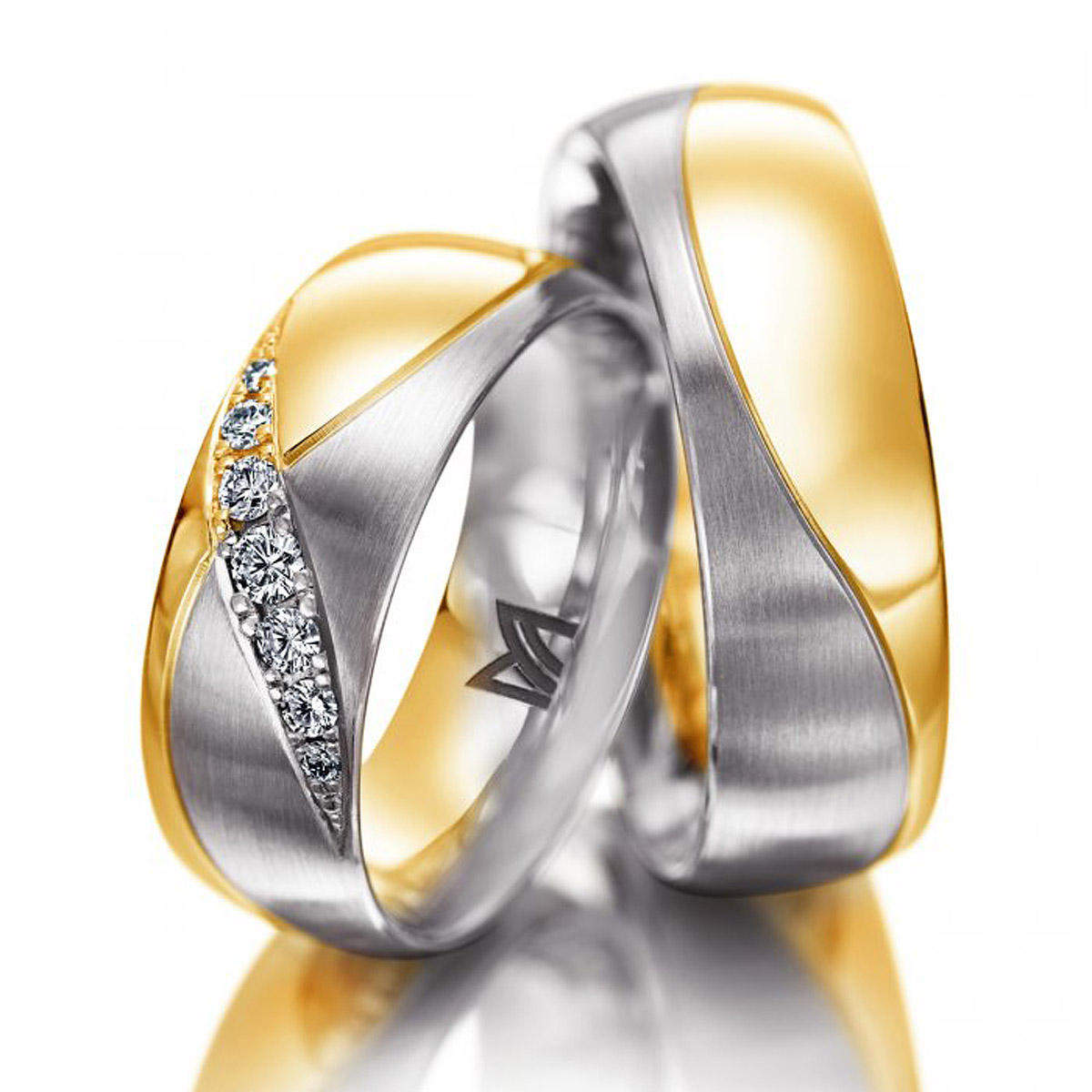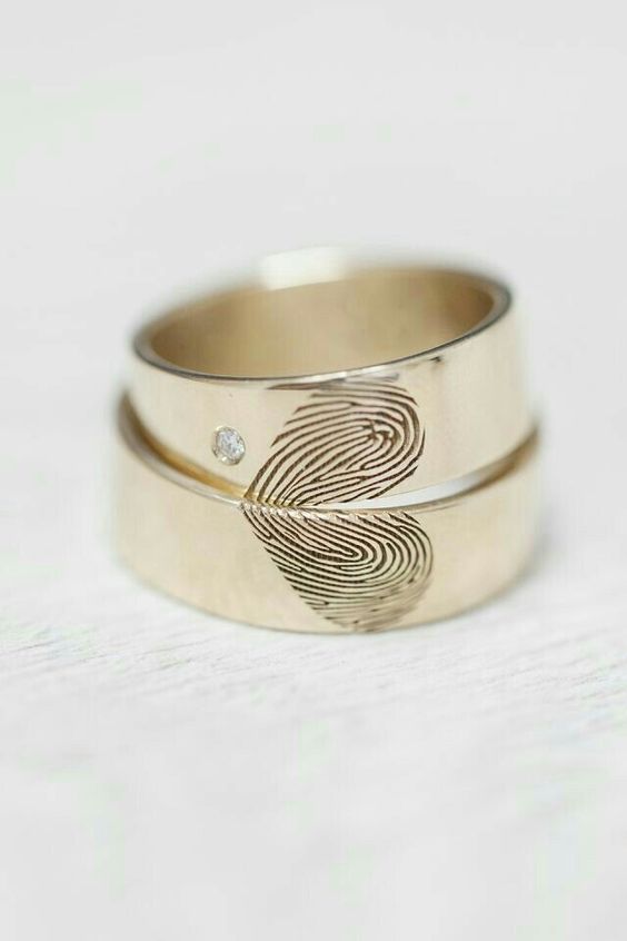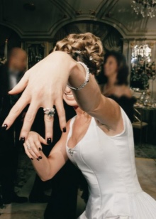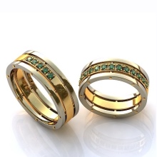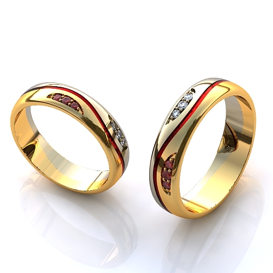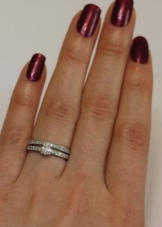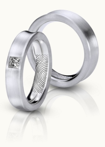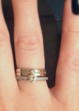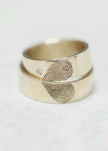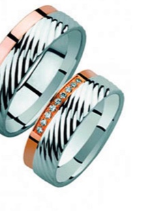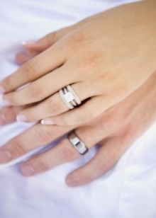 There are types of jewelry fused together. It turns out one wide ring with two intervals. The spectacular solution in this case is white gold or platinum. The decor of such goods are large diamonds or diamonds. Such a decision is recommended to make mature couples.