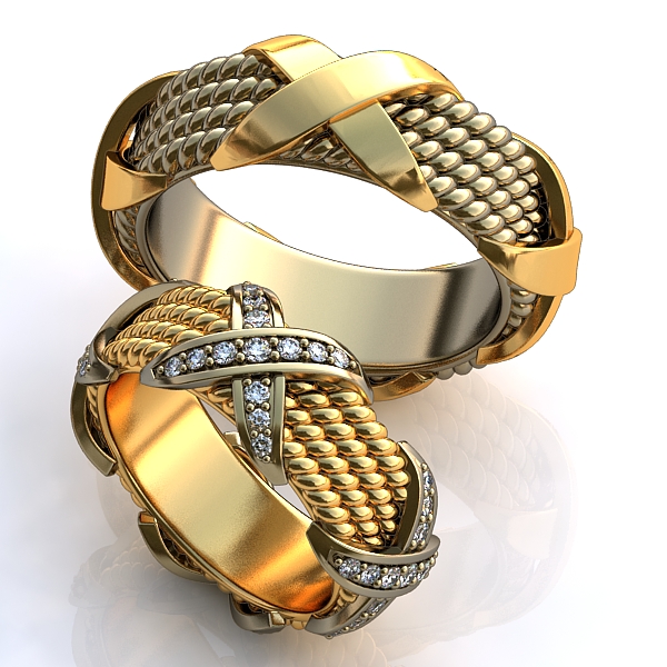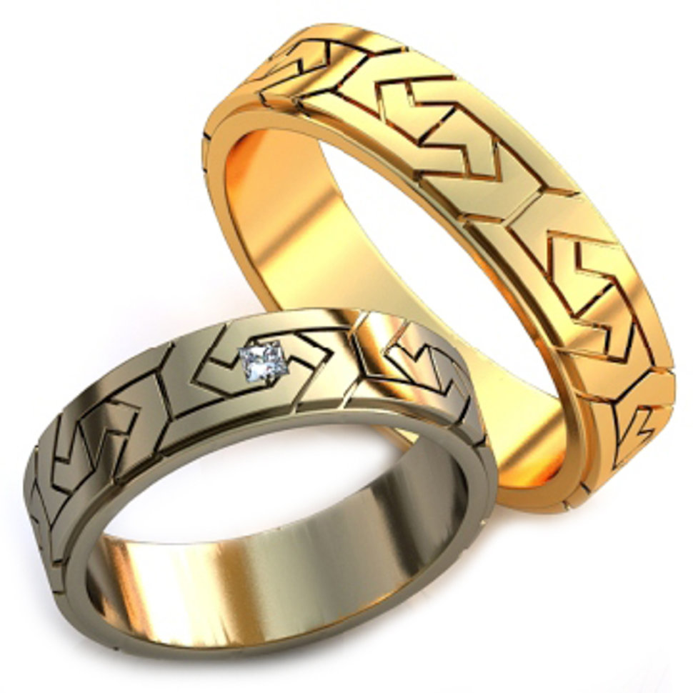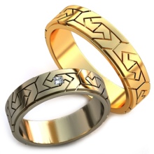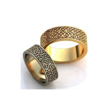 For connoisseurs of native culture are offered options decorated with Slavic script. These rings are wide enough and are ideal for both men and women. Pairing rings of this design will make the wedding unusual.