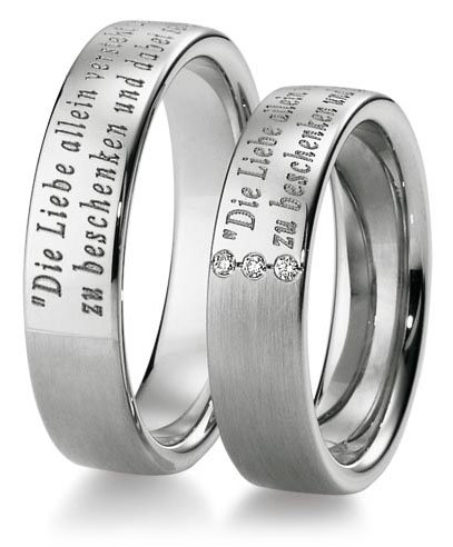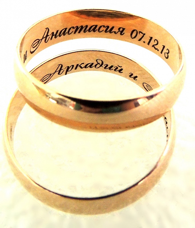 The engraving on the marriage symbol is a very individual thing. It is of great importance for the newlyweds. Each ring with an engraving is exclusive.