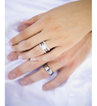 - Most often, couples are faced with the problem that the girl wants a ring with stones, and a man without them. This problem is easily solved. Objects can be chosen from one metal, but the woman is decorated, and the man is the classic version. It will look no less beautiful and in harmony with each other.